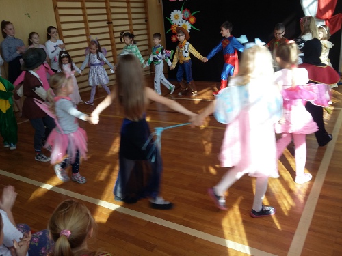 Po raz pierwszy obchodziliśmy w naszej szkole ,,Dzień postaci z bajek”. W tym dniu młodsi uczniowie przebrali się za swoich ulubionych bohaterów. Na szkolnym korytarzu można było spotkać, m. in. księżniczki, wróżki, rycerzy, a nawet smoka. Na uczniów czekały również niespodzianki przygotowane przez opiekuna SU panią Marzenę Warchał i uczennice klasy szóstej.